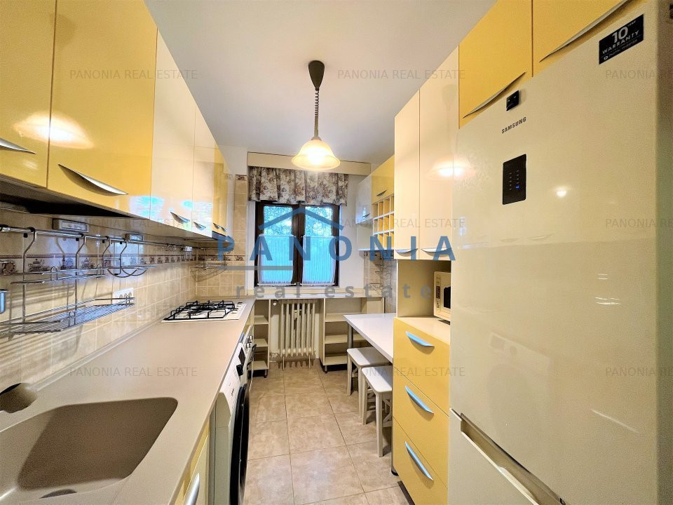 Apartamentul este compus din 2 camere decomandat, baie, bucatarie, debara/dressing, si balcon inchis, cu o suprafață utila de 49,74 mp, si un balcon de tip logie de 4,20 mp. Este complet renovat (inclusiv instalații) in 2015, blocul fiind din 1984. Este situat la etajul 2 din 10, se vinde complet mobilat și utilat, liber imediat. Dispune de plită pe gaz, cuptor și hotă Ariston Hotpoint, frigider tip combină Samsung, TV LCD Samsung, mașină de spălat rufe cu uscător - nouă- Gorenje.
