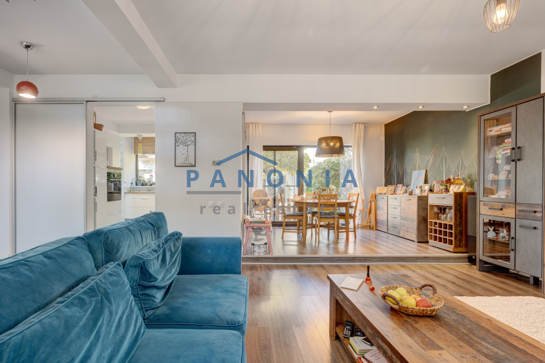 La parter, un living spațios de 33 mp, cu zonă de dining, devine inima casei — locul în care lumina pătrunde generos prin ferestrele mari și unde se deschide accesul direct către o terasă de 15 mp, perfectă pentru dimineți liniștite sau seri de vară.