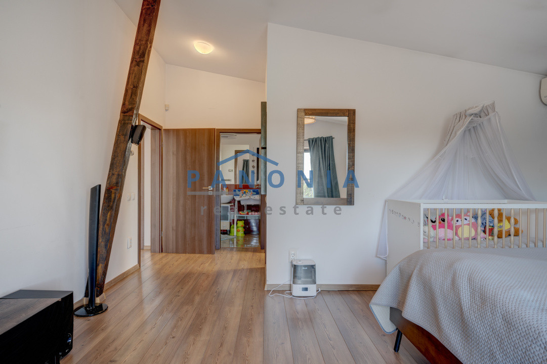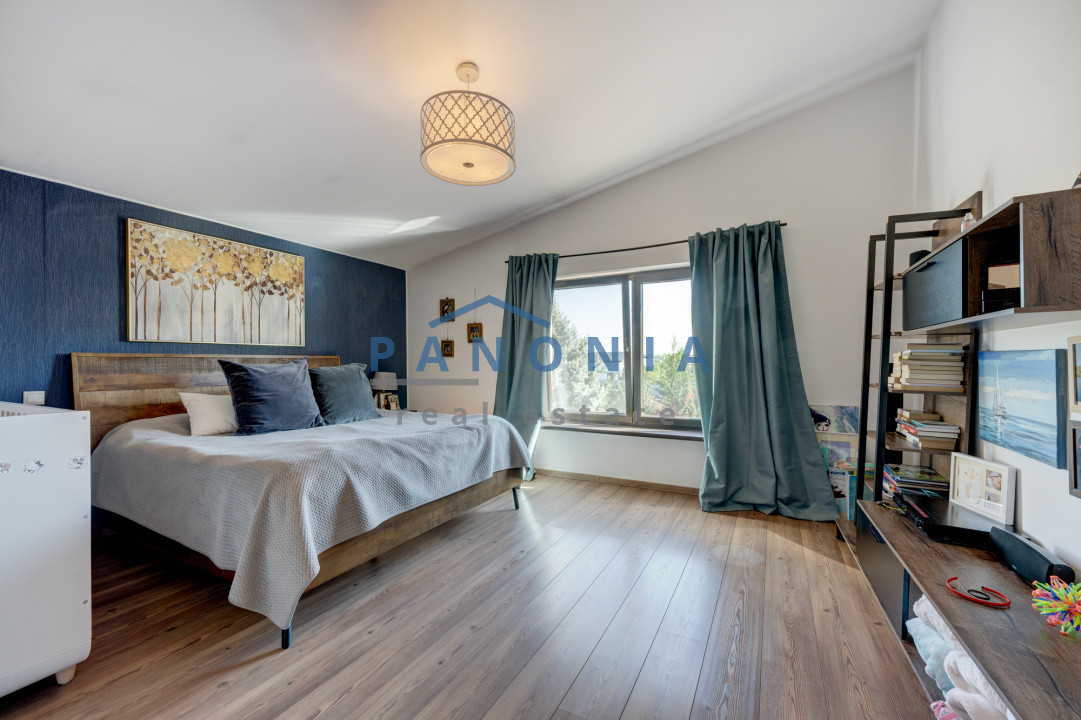 La mansardă, descoperi un dormitor matrimonial de 22 mp cu dressing de 9 mp și baie proprie, un adevărat sanctuar de relaxare. Două dormitoare secundare și o baie pe hol completează etajul, creând un spațiu ideal pentru familie sau oaspeți.